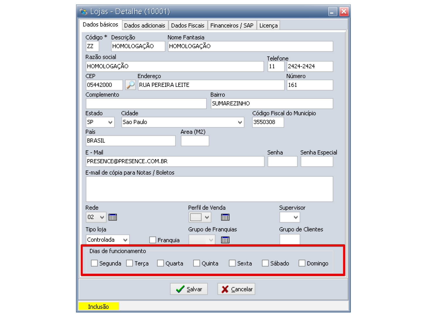 Agora ficou fácil controlar as pendências de caixa que possam ter ocorrido por falta de internet na loja. Dentro da área de cadastro de dados básicos da loja foi adicionada uma caixa de seleção para indicar os dias de funcionamento para CADA loja. Marque de acordo com a sua operação.