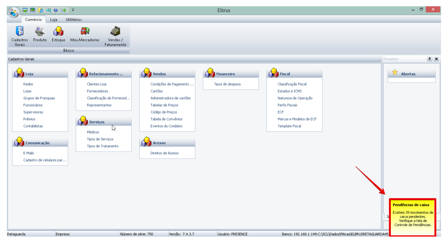 Um pop-up de alerta aparecerá no canto inferior direito da tela sempre que existir movimentos de caixa pendentes.