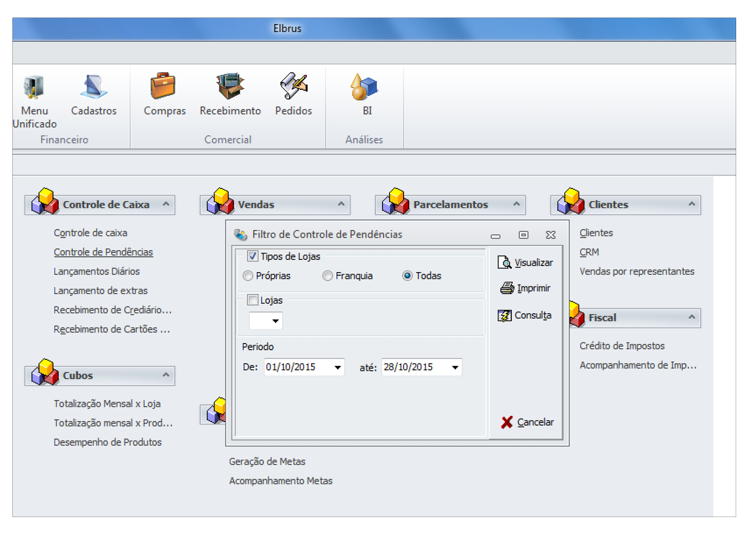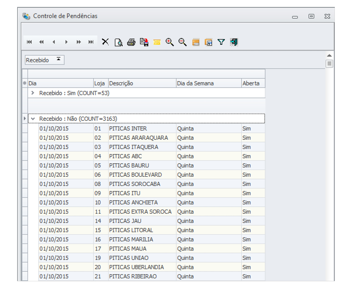 Em vendas / Controle de caixa existe uma nova opção de controle detalhado das pendências por dia e loja.