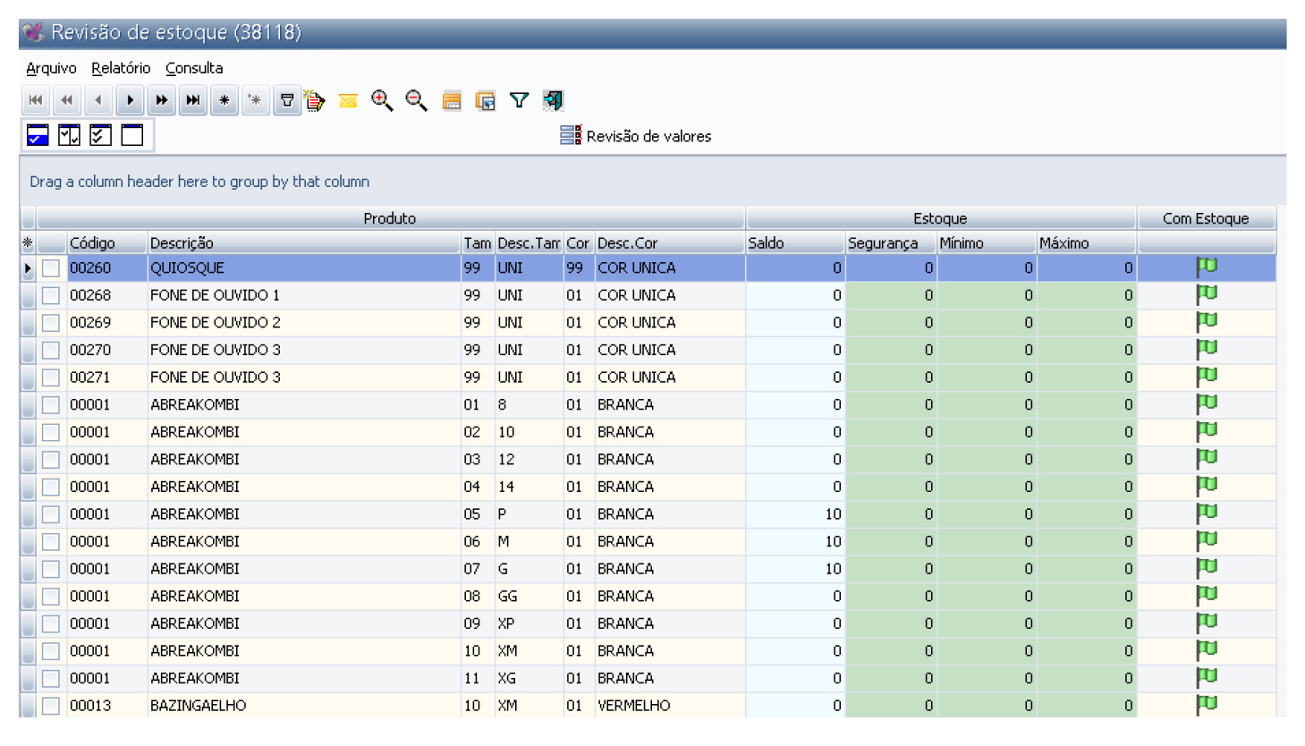 Tela totalmente revisada de modo a permitir edição dos valores de estoque mínimo, máximo e segurança de modo prático e rápido.