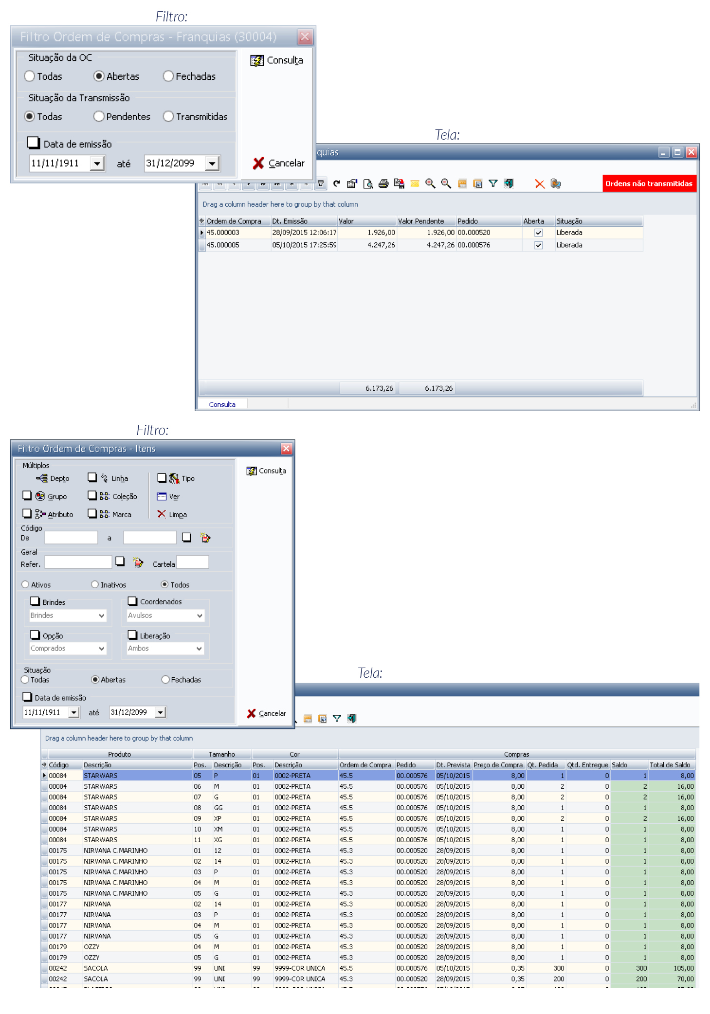 Novas telas para consulta por Ordens de Compra e por Itens de Ordens de Compra.